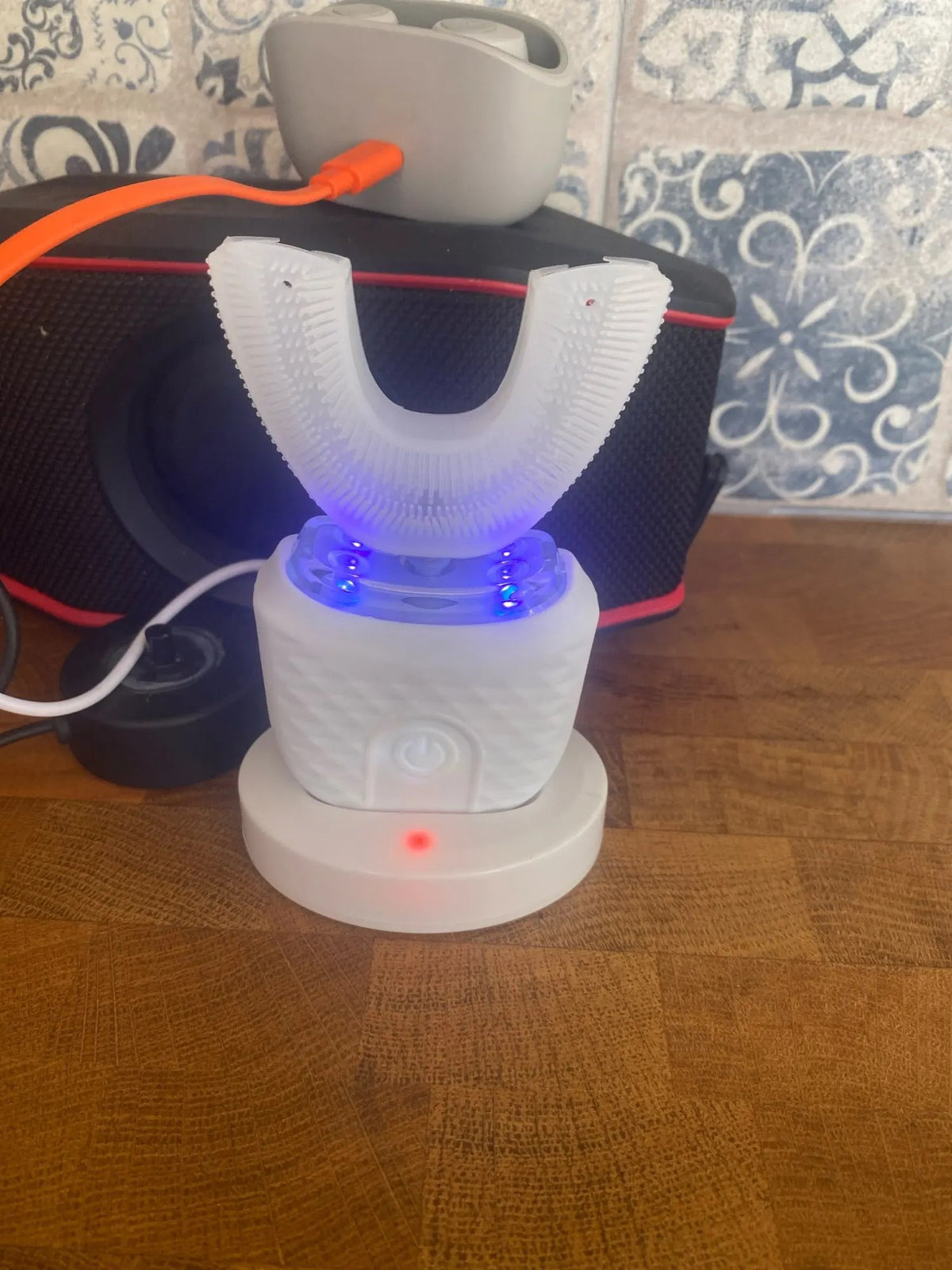 Answer 3: Yes, the toothbrush features a U-shaped ergonomic design that accommodates different mouth shapes and sizes, making it user-friendly for children and adults alike. The soft bristles are specifically designed to be gentle on sensitive teeth and gums, promoting comfort and confidence during use.